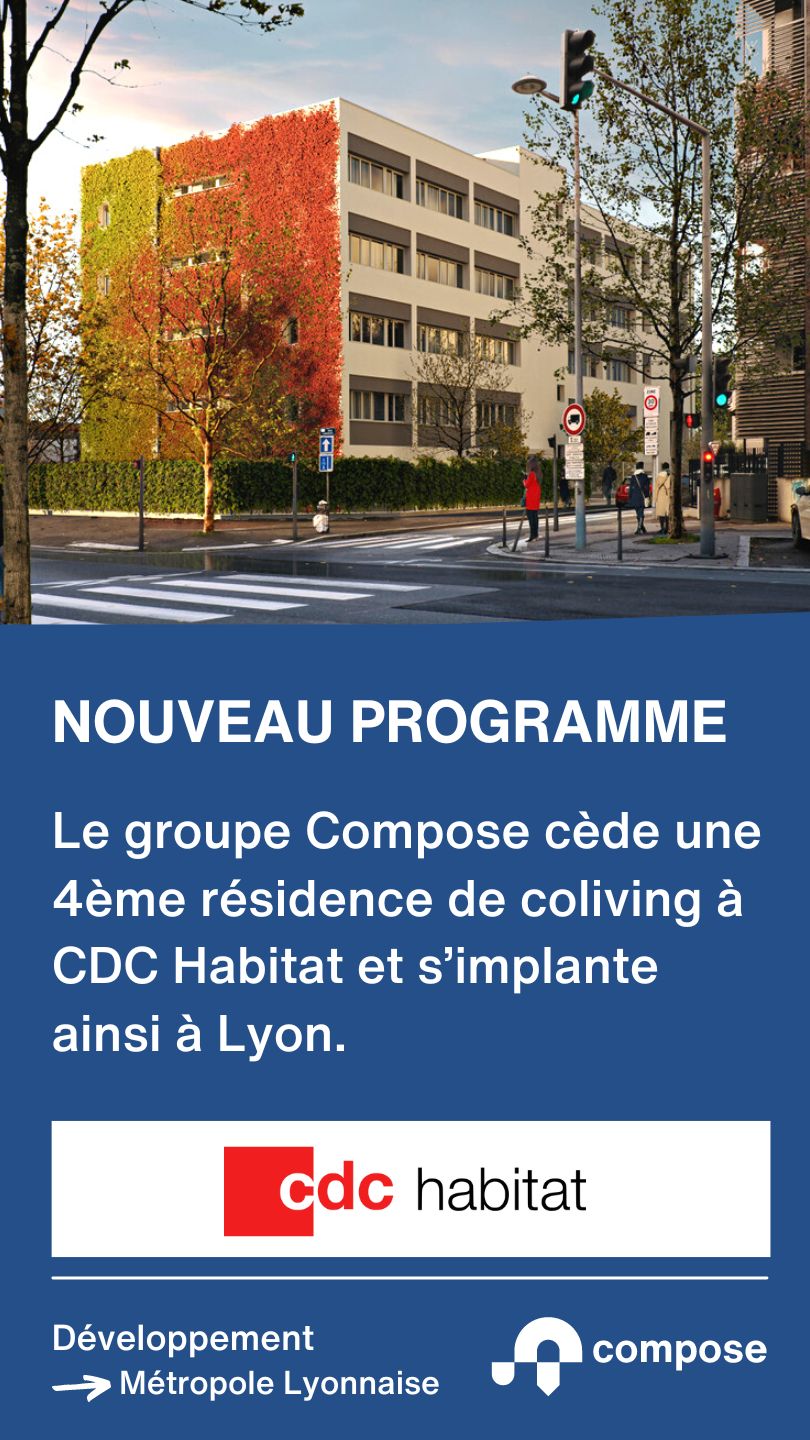 Le groupe Compose cède une 4ème résidence de coliving à CDC Habitat et s’implante ainsi à Lyon.
