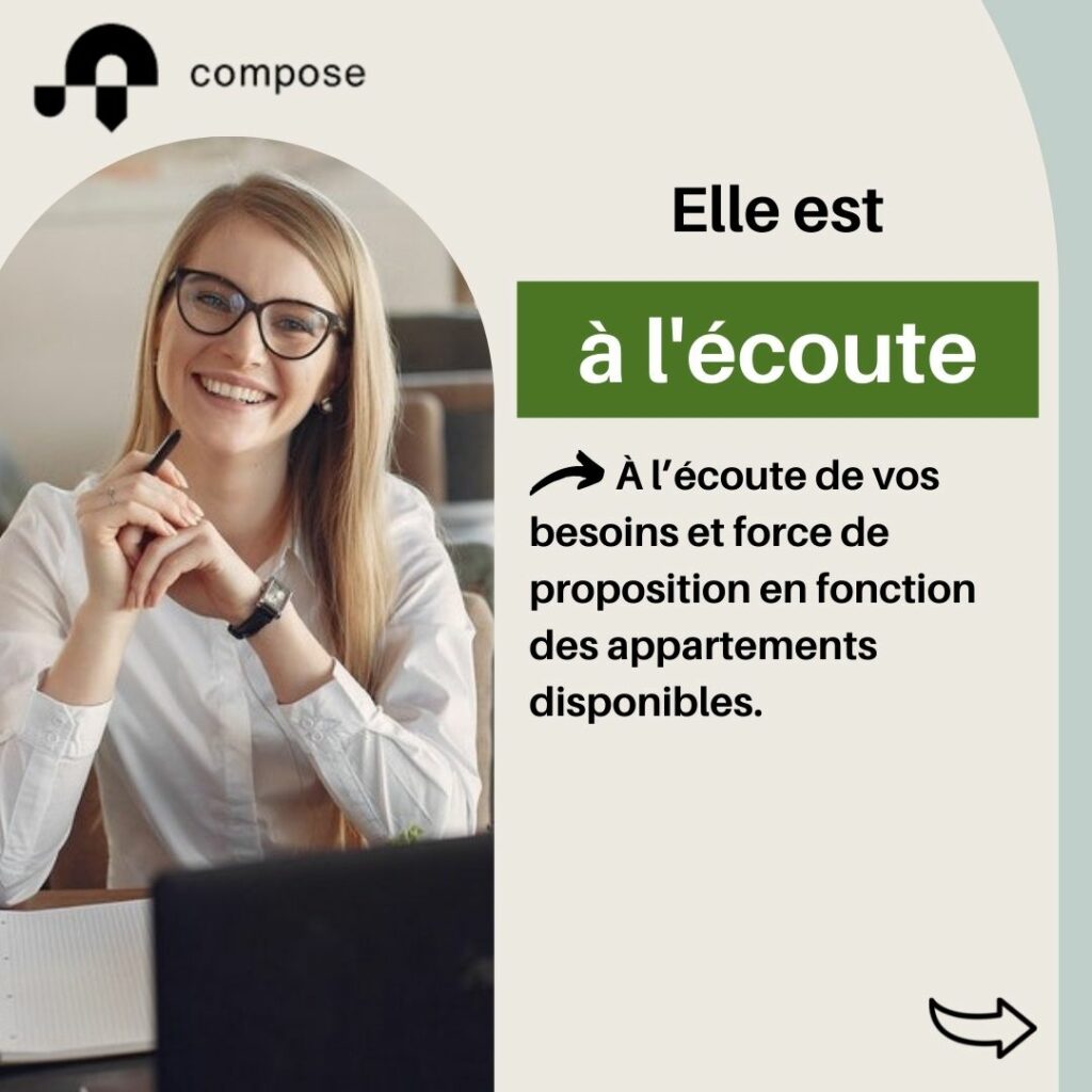 • À l’écoute de vos besoins et force de proposition en fonction des appartements disponibles,
